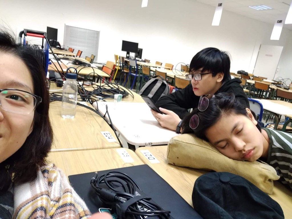 Giai đoạn đầu, chúng tôi gặp rất nhiều khó khăn trong việc học tập. Việc nghe giảng có thể coi như thử thách. Các thầy giảng cực kỳ nhanh. Lúc đầu chúng tôi có ý tưởng ghi âm bài giảng để tối nghe lại, nhưng việc nghe lại 1 slot 90 phút với tốc độ chậm hơn và nghe đi nghe lại nhiều lần thật bất khả thi khi việc dịch vở chép từ tiếng pháp sang tiếng anh vẫn đang chờ giải quyết.